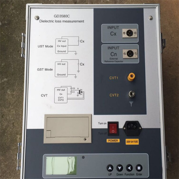 標(biāo)準(zhǔn)回路由內(nèi)置高壓穩(wěn)定度標(biāo)準(zhǔn)電容器與標(biāo)準(zhǔn)電阻網(wǎng)絡(luò)組成,由計(jì)算機(jī)實(shí)時(shí)采集標(biāo)準(zhǔn)回路電流與測(cè)試回路的電流幅值及其相位差,并算出被測(cè)試品電容容值(CX)和介質(zhì)損耗(tgδ)。